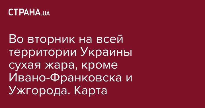 Во вторник на всей территории Украины сухая жара, кроме Ивано-Франковска и Ужгорода. Карта