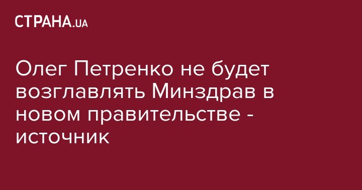 Руководитель Национальной службы здоровья Олег Петренко, который был главным претендентом на должность министра здравоохранения, не будет возглавлять Минздрав. Об этом сообщил источник "Страны".