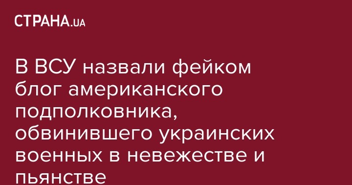 В ВСУ назвали фейком блог американского подполковника, обвинившего украинских военных в невежестве и пьянстве