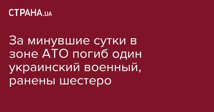 За минувшие сутки в зоне проведения антитеррористической операции в результате боевых действий один украинский военный погиб, шесть получили ранения, сообщил спикер администрации президента Украины по вопросам АТО Андрей Лысенко.
