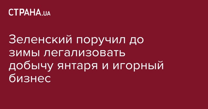 Зеленский поручил до зимы легализовать добычу янтаря и игорный бизнес