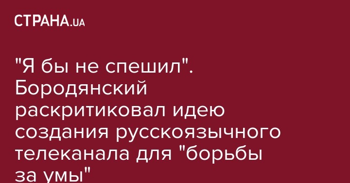"Мое отношение такое: я считаю, что вначале мы должны сформулировать задачу. Мы хотим создать русскоязычный телеканал, чтобы что? Мы должны сказать: вот есть задача, вот есть инструменты, вот есть последствия их использования. Вот есть ресурс, который необходимо на это потратить. Выложили, посмотрели, покрутили, сказали - окей, действительно эту задачу можно решить русскоязычным каналом, стоить это будет столько-то денег. Или нет, эту задачу можно решить по-другому, и элементы этого решения нам еще дадут каких-то побочных эффектов", - отметил Бородянский.