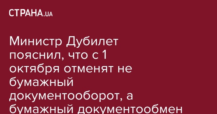 Министр Дубилет пояснил, что с 1 октября отменят не бумажный документооборот, а бумажный документообмен