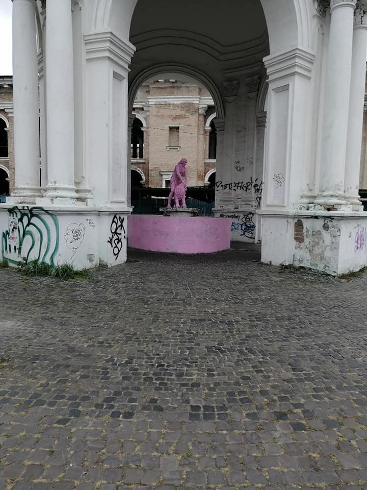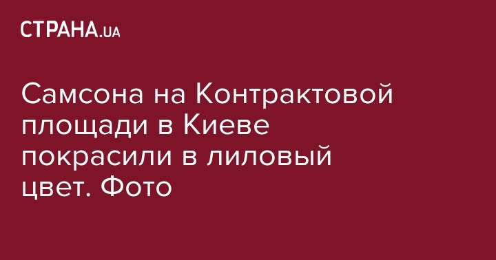 В Киеве обновили фонтан "Самсон" на Контрактовой площади. Его очистили от мусора, но перекрасили его в ярко-розовый (лиловый) цвет. Подтверждающие этот факт фото появились на странице журналиста Дмитрия Качуры в Facebook.