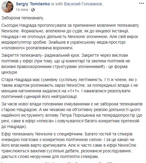 Глава Национального союза журналистов Украины Сергей Томиленко у себя в Facebook прокомментировал данное решение.
