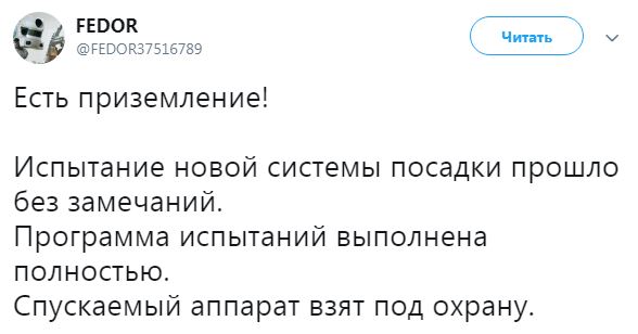 "Все операции по сведению с орбиты и приземлению прошли в штатном режиме", — говорится в заявлении "Роскосмоса".