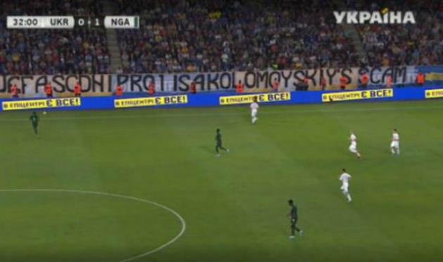 Вчера, 10 сентября, сборная Украины сыграла в Днепре товарищеский поединок со сборной Нигерии. Игра закончилась вничью со счетом 2:2. Однако боевой и бескомпромиссный поединок двух сборных запомнился не только обилием голов. Группа болельщиков вывесила на трибунах огромный банер с надписью "UEFA, Dnipro-1 is a Kolomoyskiy’s scam" ("УЕФА, Днепр-1 - это афера Коломойского").