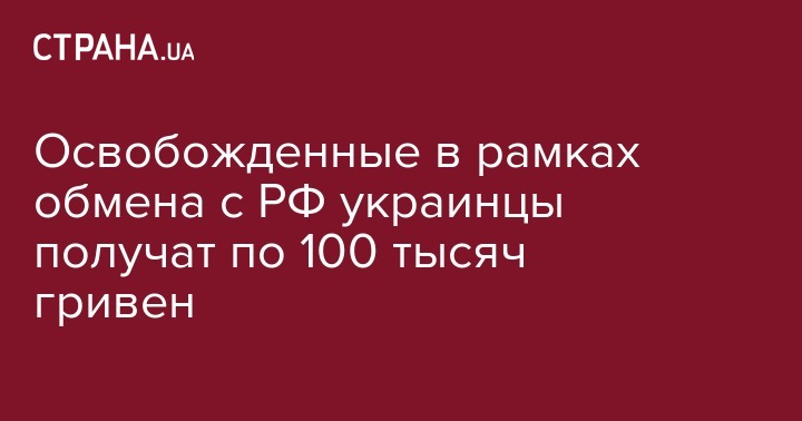 В среду, 11 сентября, Кабинет министров Украины принял решение выделить каждому освобожденному в рамках обмена с РФ 7 сентября украинцу денежную выплату в размере 100 тысяч гривен. Об этом в Facebook написала уполномоченный Верховной Рады по правам человека Людмила Денисова.