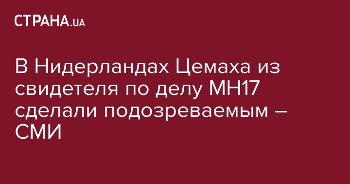 Нидерланды переквалифицировали Владимира Цемаха, ранее считавшегося ключевым свидетелем по делу о сбитом над Донбассом в 2014 году малазийском "Боинге", рейс MH17, в подозреваемых по этому же делу. Об этом сообщила депутат Европарламента от Нидерландов Кати Пири в интервью DW, опубликованном в среду.