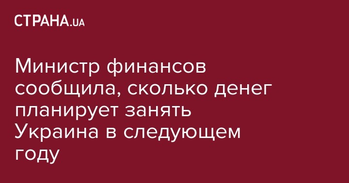 Проект госбюджета на 2020 год предусматривает то, что Украина займет 380 млрд грн, об этом сообщила министр финансов Оксана Маркарова в ходе пресс-брифинга в воскресенье. Ее слова передает "Интерфактс-Украина"
