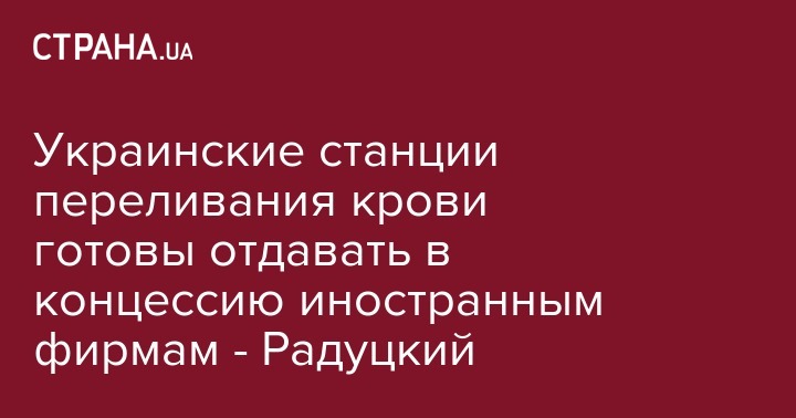 Украинские станции переливания крови готовы отдавать в концессию иностранным фирмам - Радуцкий