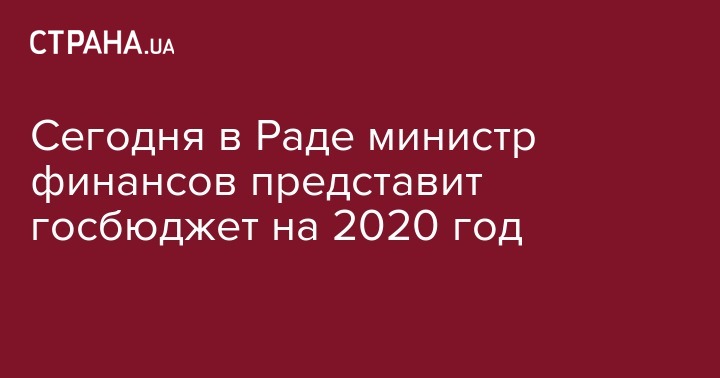 Сегодня в Раде министр финансов представит госбюджет на 2020 год