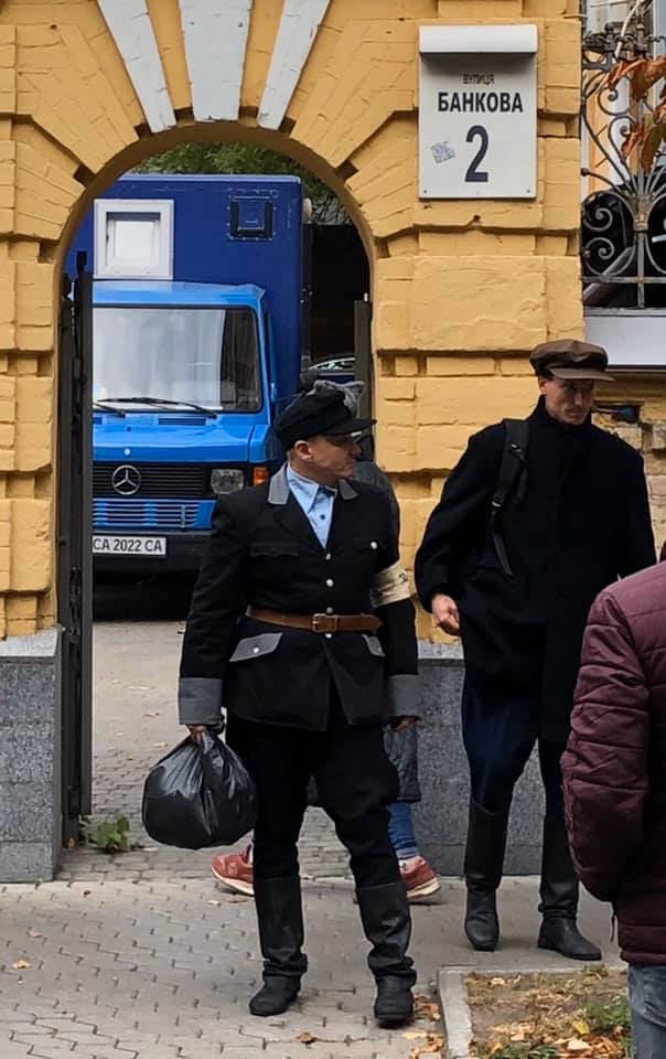Как выяснилось, нацистская символика оказалась декорациями, а на банковой снимают художественный фильм о фашистской оккупации Киева в период Второй Мировой войны.