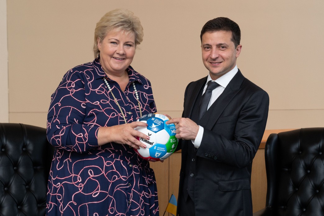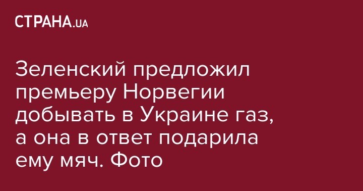 Зеленский предложил премьеру Норвегии добывать в Украине газ, а она в ответ подарила ему мяч. Фото
