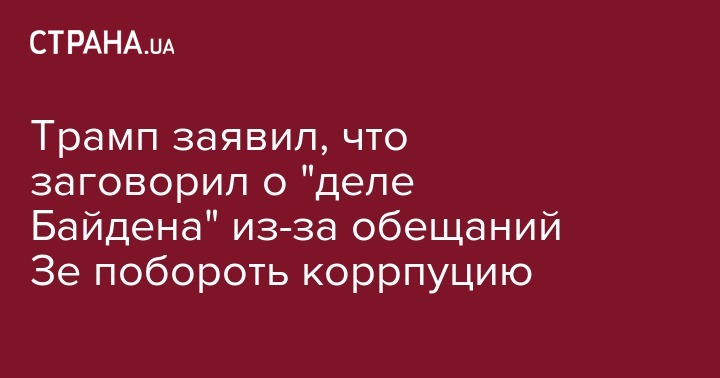 "Я хочу, чтобы он сделал все, что он может… Это не его прямая работа, и он об этом недавно сказал. Но все, что он может сделать с позиции борьбы с коррупцией. Потому что коррупция огромная. Когда сын Байдена уходит с миллионами долларов из Украины, и они ничего не знают и ему платят миллионы долларов – это коррупция. Когда Байден уходит из Китая с 1,5 млрд долларов… Все это ужасно", - сказал он во время встречи с Зеленским в среду в Нью-Йорке.