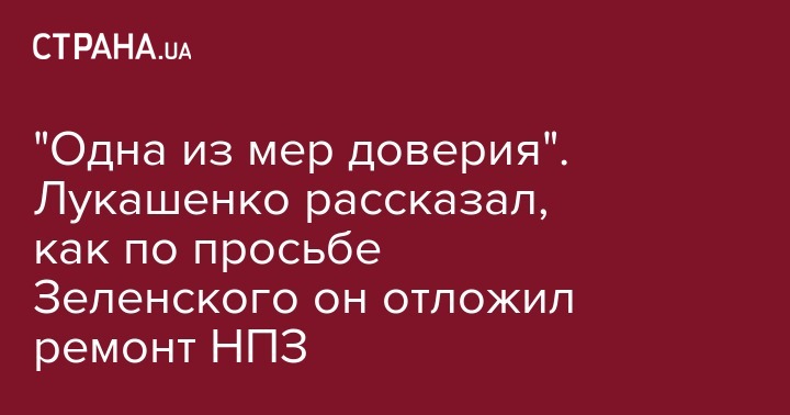 Президент Украины Владимир Зеленский просил президента Беларуси Александра Лукашенко перенести плановый ремонт на Мозырском нефтеперерабатывающем заводе (НПЗ). Об этом со ссылкой на слова Лукашенко пишет "Интерфакс"