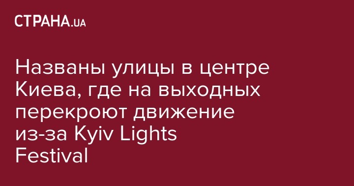 "28-29 сентября на Крещатике пройдет третий Международный фестиваль света и медиаискусства Kyiv Lights Festival. В связи с этим с 21:00 27 сентября до 07:00 30 сентября на главной улице столицы запретят движение всех видов транспорта – от пересечения улицы Крещатик и улицы Архитектора Городецкого до пересечения улицы Крещатик и улицы Богдана Хмельницкого", - говорится в сообщении.