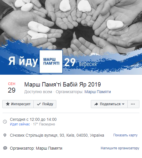"Мы пройдем пешком путь, которым 29 и 30 сентября 1941 года прошли на смерть евреи Киева. Это были обычные киевляне – наши родные, близкие и их друзья. Среди них были старики, женщины и дети", - сказано в сообщении.