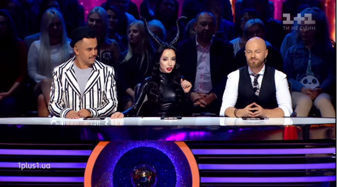 Выпуск решили посвятить известным кинообразам. Причем подготовились и ведущие. Балерина, и самая строгая из судей, Екатерина Кухар воплотилась в Малифисенту, облачившись в яркий наряд.