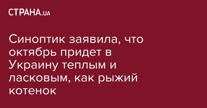 Синоптик заявила, что октябрь придет в Украину теплым и ласковым, как рыжий котенок