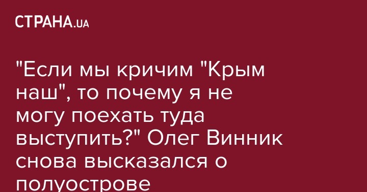 "Если все говорят "Крым наш", почему наши соотечественники едут туда отдыхать, то это нормально? Это ведь разрешено законом? Мы должны закон уважать. Но наши соотечественники имеют право ездить в Крым", - сказал Олег Винник.