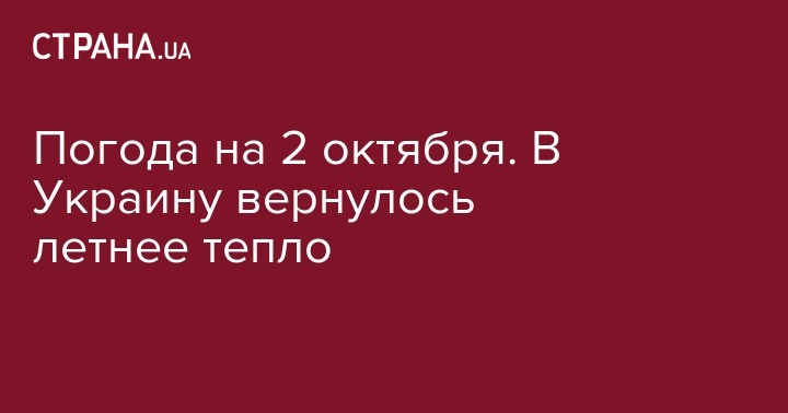 Погода на 2 октября. В Украину вернулось летнее тепло