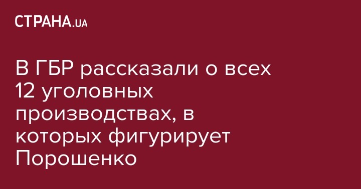 Экс-президент Петр Порошенко фигурирует в 12 уголовных производствах, досудебное расследование в рамках которых проводит ГБР. Об этом со ссылкой на информацию Государственного бюро расследований пишут "Украинские новости"