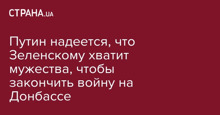 Путин надеется, что Зеленскому хватит мужества, чтобы закончить войну на Донбассе