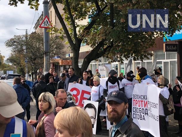 Митинг в поддержку 112 Украина, NewsOne и Zik в Житомире. Фото: УНН