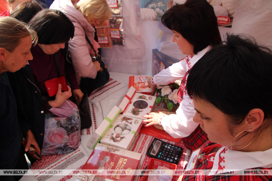 Продукцию на ярмарке представили более 60 производителей из Беларуси и Украины. Здесь, помимо сувениров и украшений, можно приобрести мясную и молочную продукцию, полуфабрикаты, сладости, соки и вина, одежду, постельное белье.