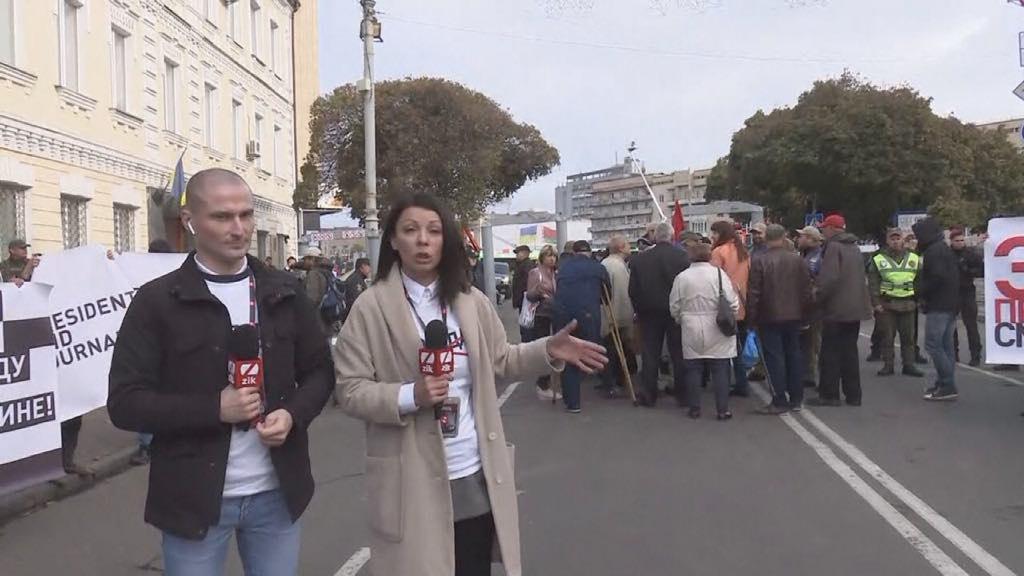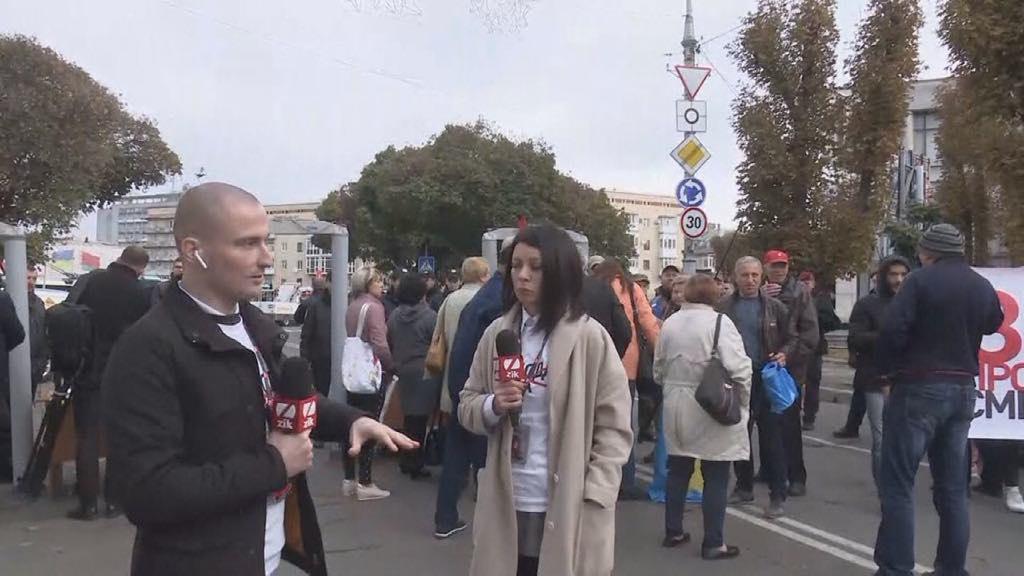 В Житомире в пятницу, 4 октября, проходит акция в поддержку телеканалов "112 Украина", NewsOne и Zik. Ее участники требуют от президента Владимира Зеленского, который в этот день находится в городе, прекратить давление на СМИ.