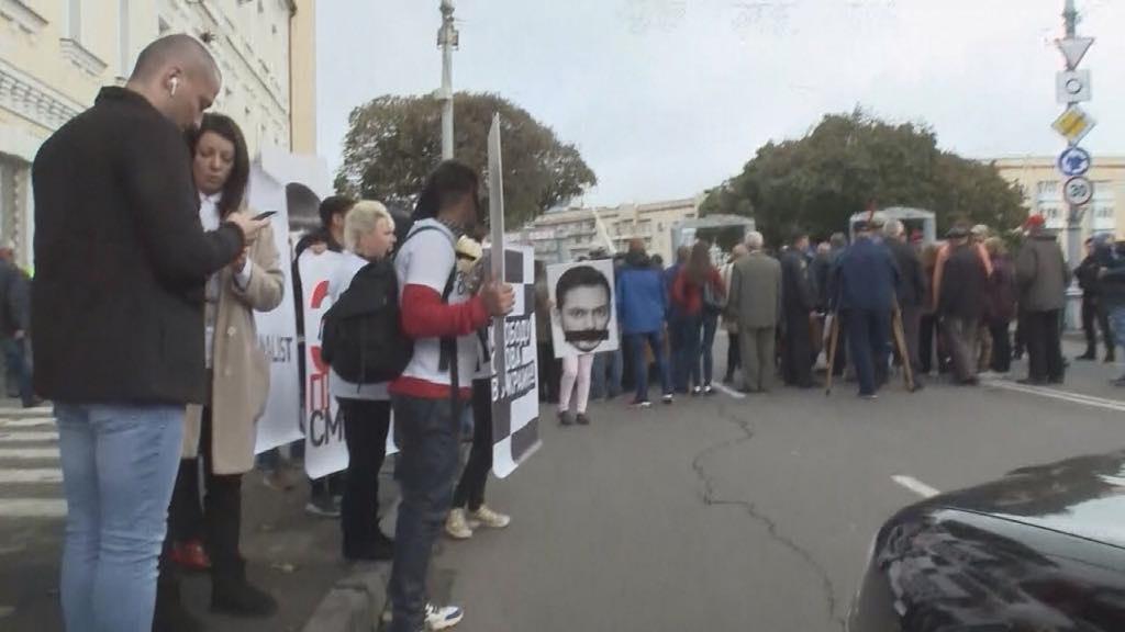 Митингующие с плакатами "Зеленский против свободы слова" и в футболках "Зе против СМИ" заявляют, что сами хотят решать, какие каналы им смотреть.