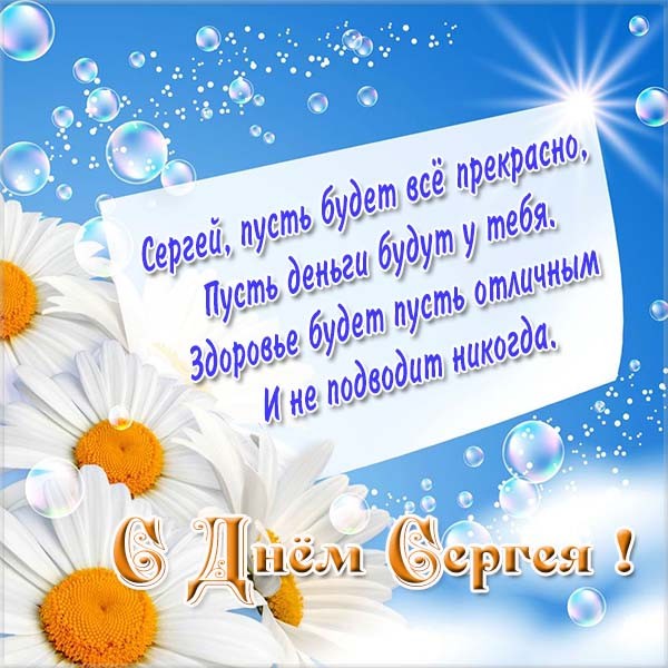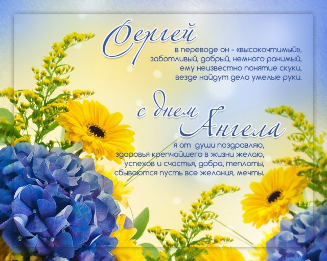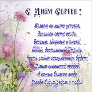 С Днем ангела, Серега, пусть рядом с тобой всегда будут надежные и преданные люди. По жизни пусть везет, в труде - сопутствует успех и признание.