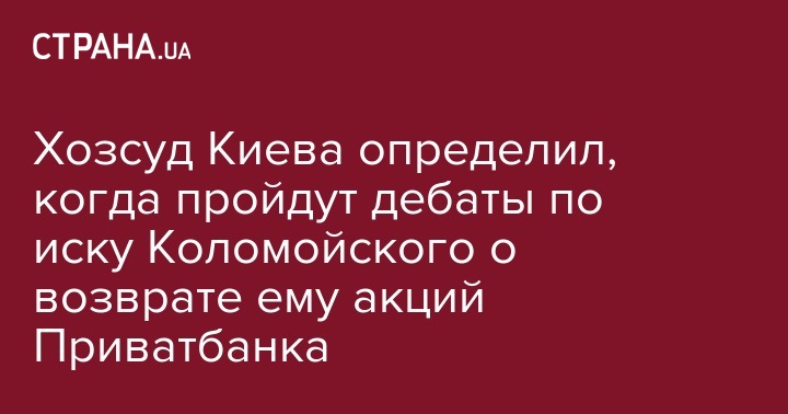 Хозсуд Киева определил, когда пройдут дебаты по иску Коломойского о возврате ему акций Приватбанка