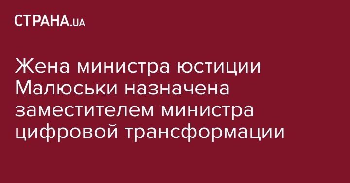 Людмила Рабчинская, жена нынешнего министра юстиции Дениса Малюськи, назначена заместителем министра цифровой трансформации. Об этом говорится на сайте правительства