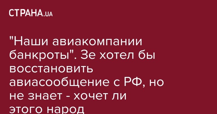 Президент Украины Владимир Зеленский заявил о необходимости возобновления авиасообщения с Россией, так как из-за его отсутствия на грани банкротства находятся украинские компании.