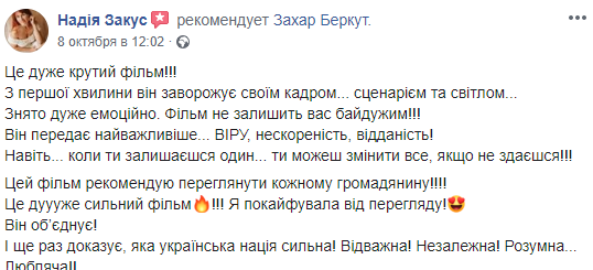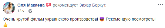 "Очень крутой фильм украинского производства! Рекомендую посмотреть!"
