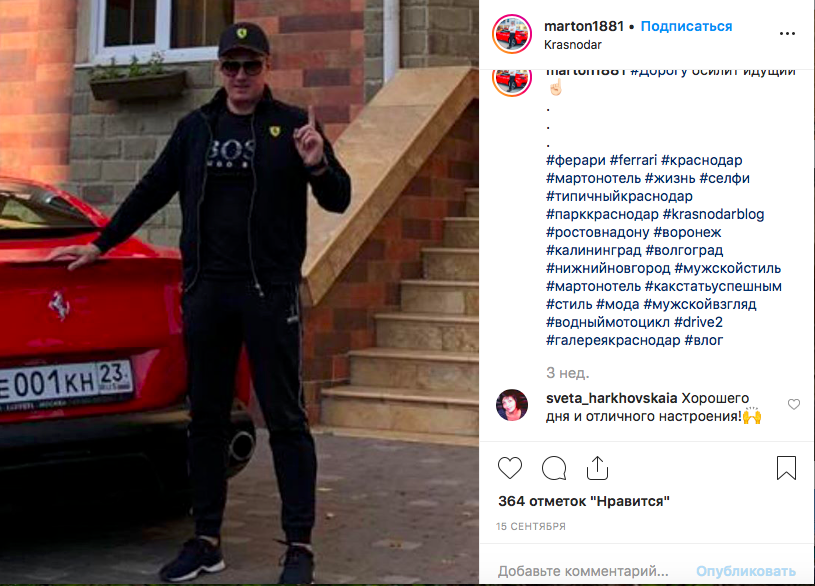 Помимо фотоотчетов с многочисленных поездок (в основном по России), Андрей Марченко часто публикует фото своего автомобиля - Феррари красного цвета.