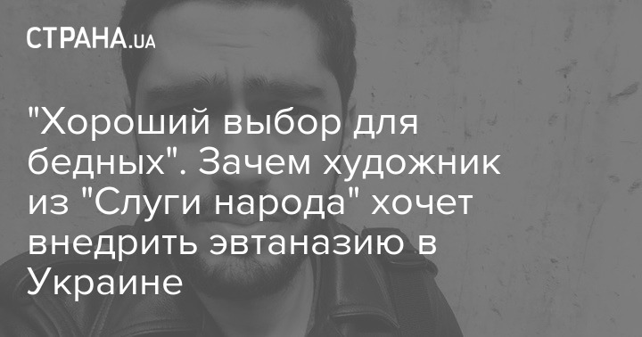 А на днях один их депутатов "Слуги народа", известный художник и арт-куратор Гео Лерос, сообщил, что в течение ближайшего года партия может подать на рассмотрение в Верховную Раду закон об эвтаназии – то есть добровольном лишении жизни.
