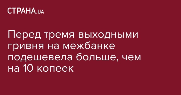 Перед тремя выходными гривня на межбанке подешевела больше, чем на 10 копеек