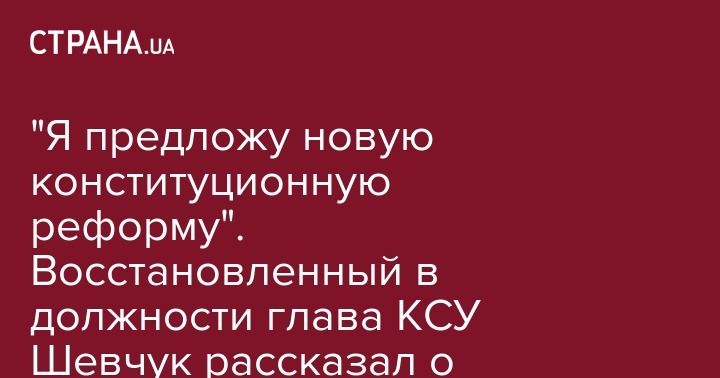 "Я предложу новую конституционную реформу". Восстановленный в должности глава КСУ Шевчук рассказал о своих планах