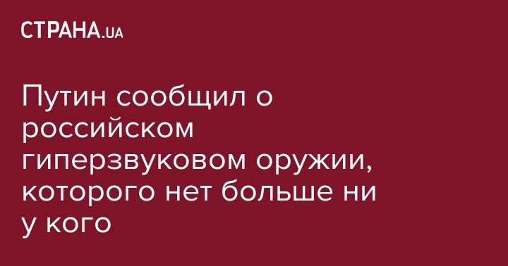 Глава Росии напомнил, что российские ученые создали оружие, которого нет ни у кого в мире - ракетные комплексы, чьи заряды летят не по баллистической траектории, а по настильной и с гиперзвуковой скоростью. Пока еще никто не создал гиперзвуковое оружие, хотя оно должно появиться у ведущих армий мира.