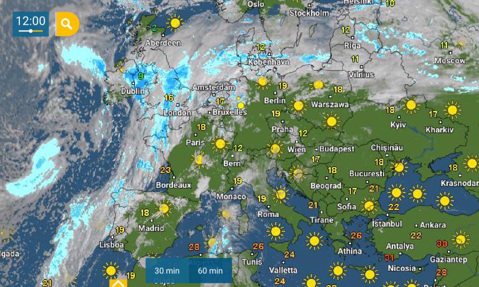 По словам Диденко, значительная часть континентальной Европы, включая Украину, обрамлена полоской дождей, ветров и прохлады с Атлантики.