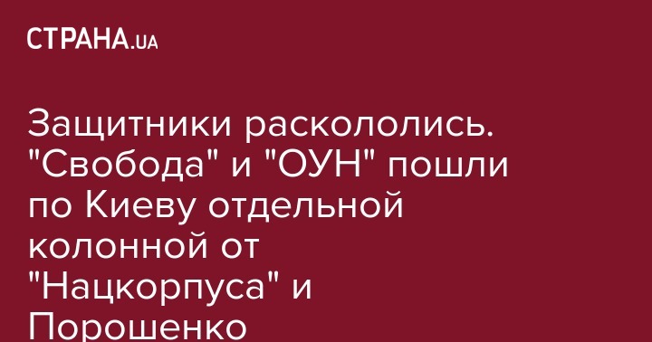 Это "Свобода", "Сокол" (молодежное крыло партии Тягнибока), "ОУН", "Карпатская сечь", в большинстве своем это представители западноукраинских организаций. Видимо, националисты решили идти отдельными колоннами, чтобы не "смешивать бренды".