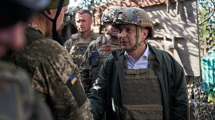 Глава Украины Владимир Зеленский во время рабочей поездки в Донецкую область ознакомился с ситуацией на линии соприкосновения сторон в зоне проведения операции Объединенных сил, а также с условиями, в которых несут службу и проживают солдаты на передовой.