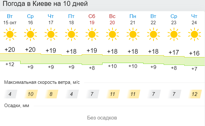 Погода на 10 дней в Киеве - с 15 по 25 октября в столице будет