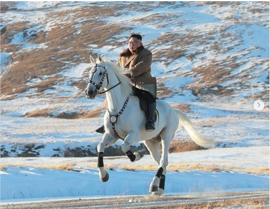 Лидер КНДР Ким Чен Ын совершил восхождение на самую высокую вершину Корейского полуострова - гору Пэктусан. Сделал он это верхом на коне. Об этом сообщает ЦТАК. В агентстве отмечают, что он "поднялся на гору Пэктусан верхом на белом коне по первому снегу".