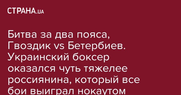 В послужном списке 32-летнего Гвоздика 17 побед (14 нокаутом) и ни одного поражения. В активе 34-летнего Бетербиева 14 побед (все - нокаутом) и тоже ни одного поражения.