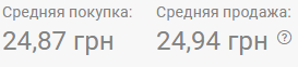 В обменках по состоянию на 08:00 средняя покупка 24,90 грн, средняя продажа - 24,95 грн.