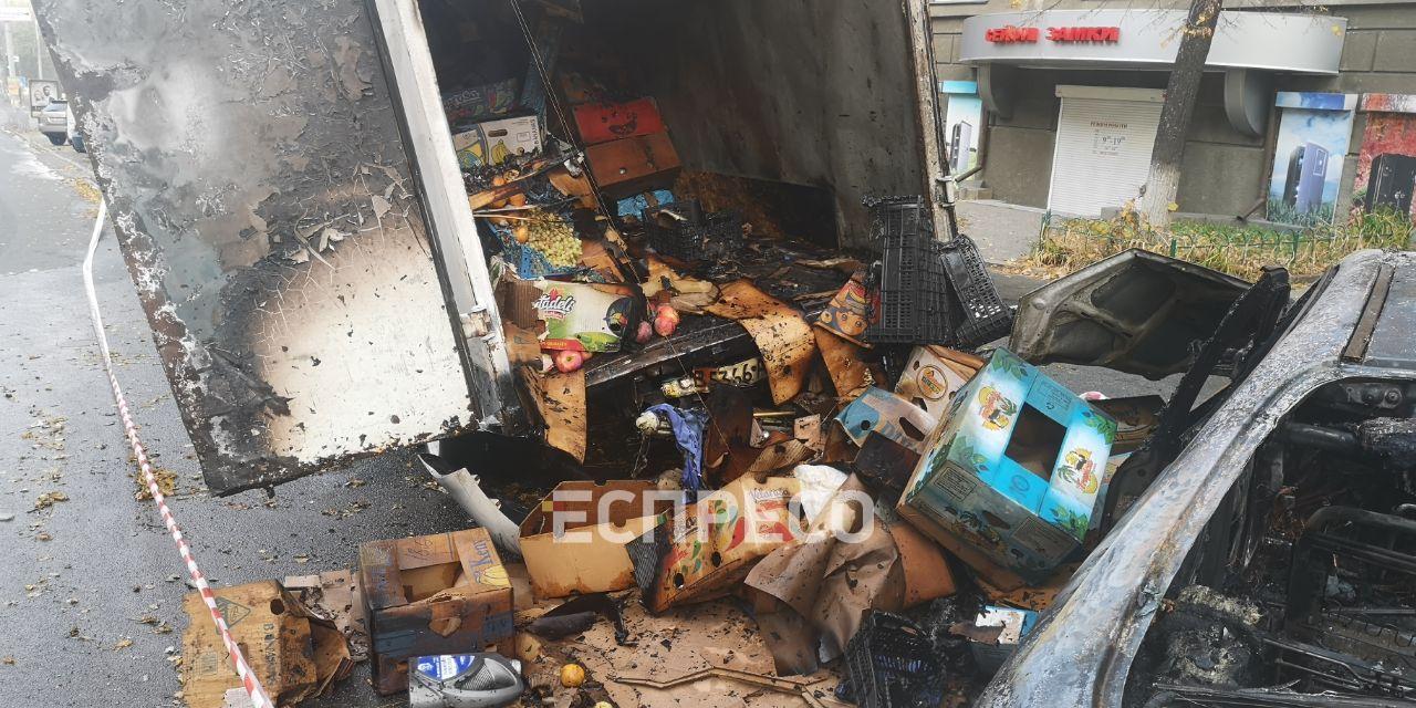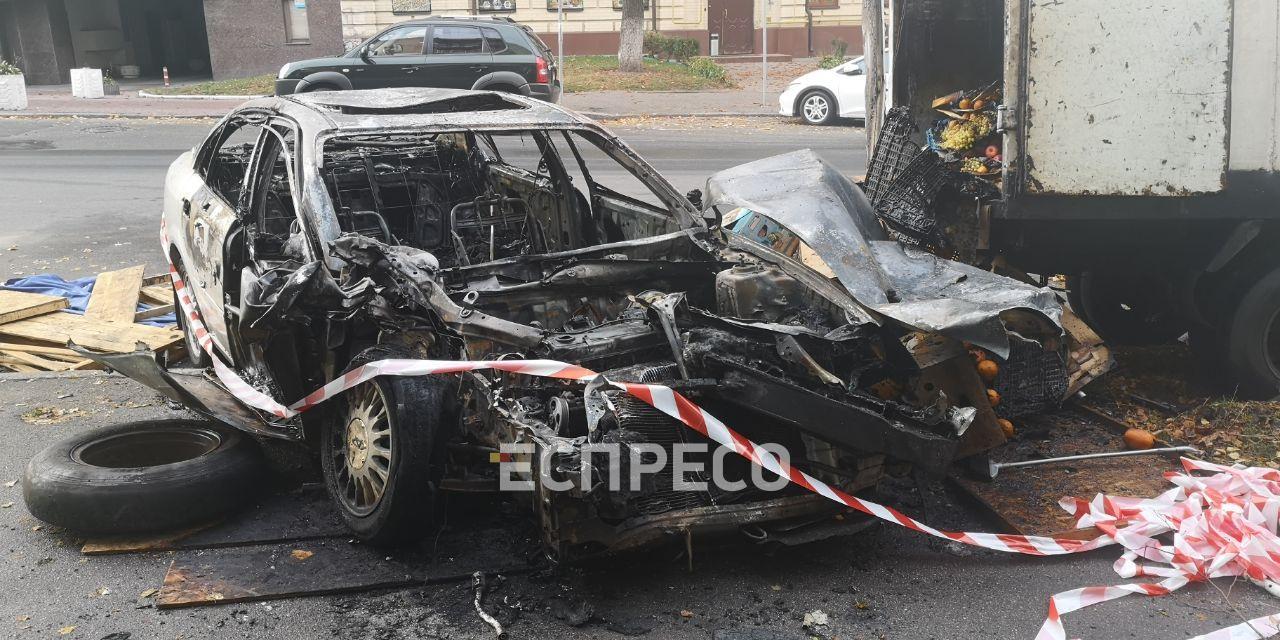 В Киеве пьяная девушка на авто врезалась в грузовик, что привело к пожару. Фото
